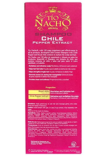 برند تیو ناچو با ۱۵۰ سال سابقه در تولید محصولات با پایه عسل ملکه مادر. شامپو عصاره فلفل Tio Nacho به طور خاص با مرطوب کننده ها، نرم کننده ها، ژل رویال و عصاره فلفل شیلی فرموله شده است. پاکسازی، تغذیه و تقویت مو. موها را سالم، نرم و قابل کنترل می کند. پوست سر را احیا و شاداب می کند.