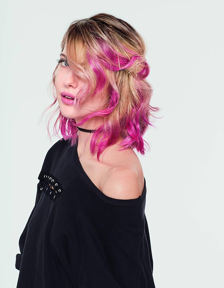 رنگ موی نیمه دائمی L’Oreal Colorista Semi-Permanent Hair Color یا رنگ موی نیمه دائمی لورآل کالوریستا محصولی ایدهآل برای تغییر ظاهر مو بدون تعهد طولانیمدت است. این رنگ مو در طیف وسیعی از رنگهای ترند و جسورانه ارائه شده و مخصوص موهای بلوند روشن یا دکلرهشده طراحی شده است، اما برخی از رنگها برای موهای تیره نیز قابل استفاده هستند. فرمول آن حاوی رنگدانههای خالص و ماسک تقویتکننده است که علاوه بر رنگدهی، به سلامت و درخشندگی مو کمک میکند. این محصول فاقد آمونیاک و پراکسید است، به همین دلیل به ساختار مو آسیب نمیزند و پس از ۴ تا ۸ شستشو بهتدریج از بین میرود. رنگ Midnight Blue (سرمهای) بهطور ویژه برای موهای تیره طراحی شده است، در حالی که رنگهای Hot Pink (صورتی پررنگ) و Turquoise (فیروزهای) بر روی موهای بلوند یا دکلرهشده جلوه بهتری دارند. همچنین میتوانید رنگها را با هم ترکیب کنید و طیفهای متنوعی مانند موی رنگینکمانی، مرجانی، کهکشانی، فستیوالی یا حتی ظاهری خاص برای هالووین خلق کنید که در هر جایی توجهها را به خود جلب کند.