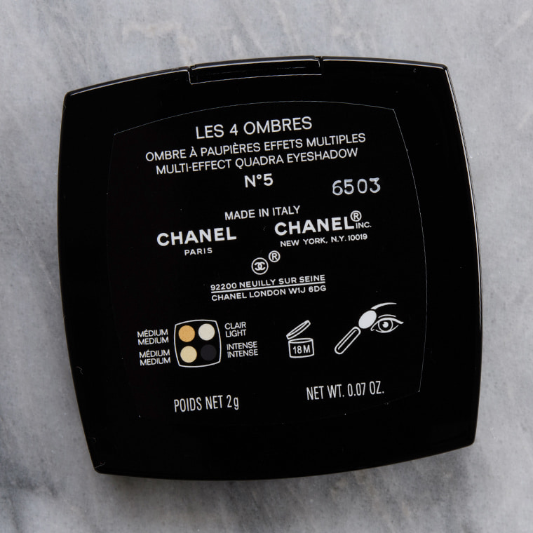 پالت سایه چشم شنل لس ۴ اومبر نامبر ۵ مولتی افکت (CHANEL LES 4 OMBRES N°5 Multi-Effect Eyeshadow Limited Edition) نسخهای محدود از مجموعه هالیدی شنل است که برای خلق آرایشهای چشم خیرهکننده و اسموکی طراحی شده است. این پالت شامل چهار رنگ ابریشمی و غنی از پیگمنت است که امکان هایلایت، برجسته و بزرگ کردن چشمها را فراهم میکند. ترکیبی از سه طیف متنوع طلایی در کنار مشکی گرم با فینیش ساتنی جلوهای لوکس و ماندگار ایجاد میکند. سایهها دارای بافت نرم و مخملی هستند که بهراحتی روی پلک مینشینند و ترکیب میشوند. فرمولاسیون غنی از پیگمنت این محصول جلوهای زنده ایجاد میکند، درحالیکه اولین رنگ پالت شاین بیشتری نسبت به سایر رنگها دارد و میتوان از آن بهعنوان لایه نهایی (تاپ کوت) استفاده کرد. برای افزایش دوام و کاهش ریزش، استفاده از براش مرطوب یا پرایمر چسبنده توصیه میشود. طراحی منحصربهفرد این پالت با طرح برجسته بطری نمادین N°5 و عدد ۵ روی سایهها، آن را به محصولی خاص و کلکسیونی تبدیل کرده است. بستهبندی گیفت این محصول دارای آینه همراه نیست.